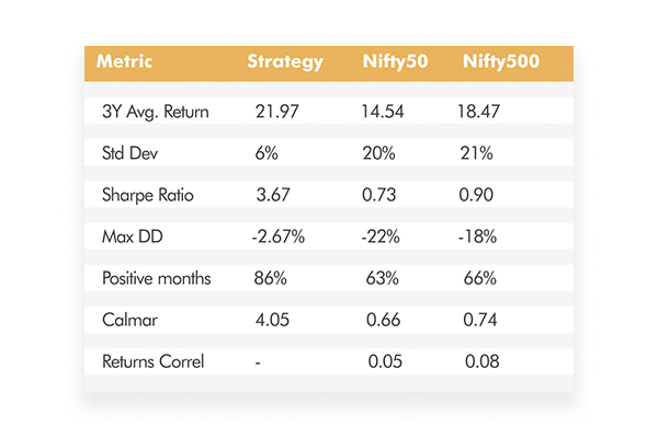 Our strategies deliver superior returns independent of market cycles at an attractive risk-reward ratio by trading in instruments at the top end of the liquidity spectrum. We prefer to categorize these as absolute return strategies with a very low correlation to traditional asset classes. The technology-centric approach ensures strict trading discipline through a robust control mechanism and pre-defined risk parameters.